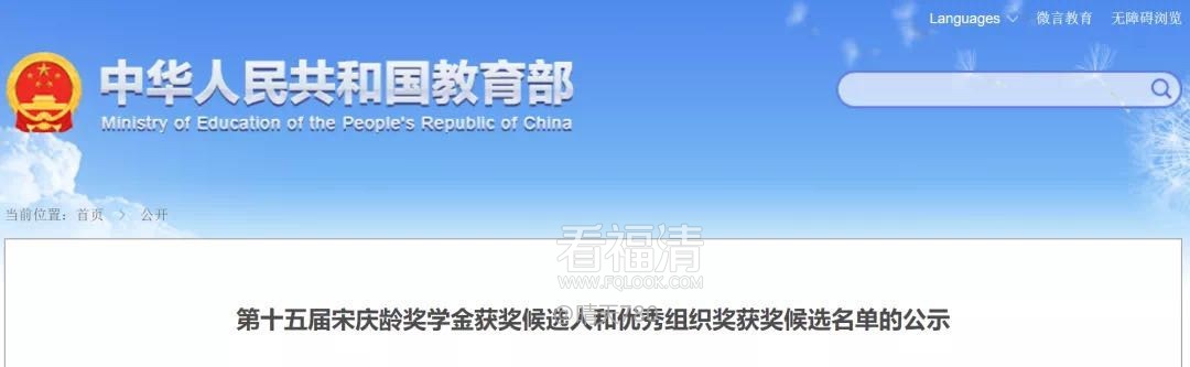 宋庆龄奖学金候选名单公布