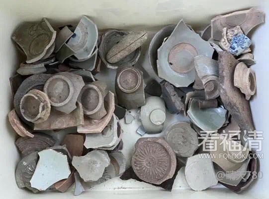 在一个塑料整理箱里,足足有百余块瓷片和碗、盘底足,有花鸟虫鱼,有青花刻花,有陶制瓦当,有玉璧底足等不一而足。也有比较典型的东张窑兔毫盏,相对完整的龙泉窑盘子。附近村民送来的刻有“凤山寺”字样的石雕香炉、七级石雕宝塔。金属类的有锡壶,钱币类有“崇宁重宝”和其它铜钱。特别是一块平底满天青釉底足,同行的黄檗书院研究员王赞成先生认为,平底足流行于唐中期,或许这是天竺出土瓷器、瓷片中最早的一件。这些文物遗存,默默无言,记下的却是天竺曾经的禅刹岁月。