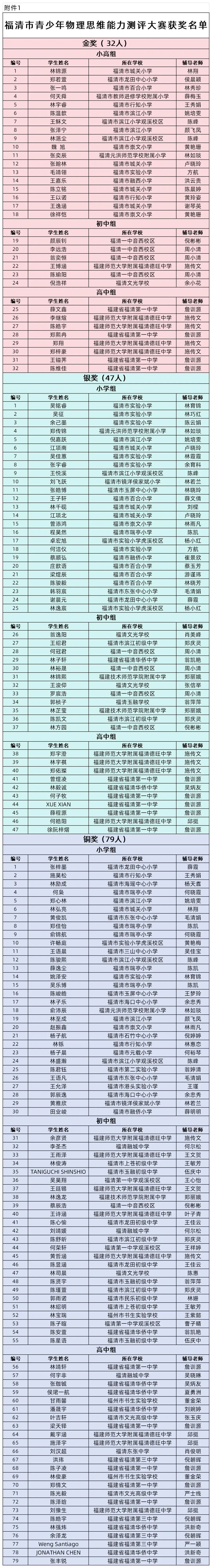 喜报!恭喜158位获奖的福清学子! |