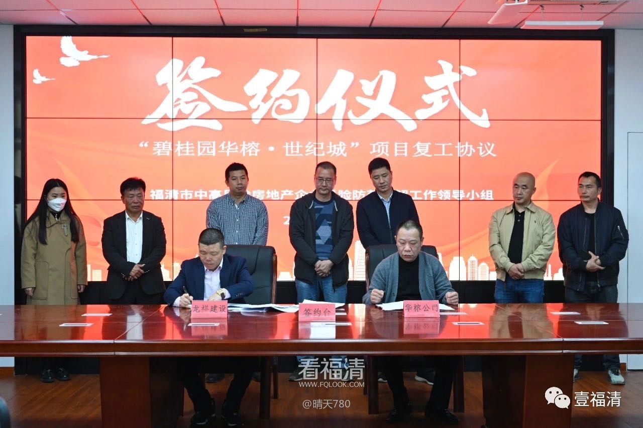 “复工协议的签订并不是结束,而是一个新的开始。我们将持续跟踪该项目后续建设进展,各专班成员落实相关职责,推动‘碧桂园华榕·世纪城’项目复工建设,切实维护购房人合法权益及各方正当利益,维护社会安定稳定。”福清市住房和城乡建设局房地产开发管理科负责人俞裕铿说。