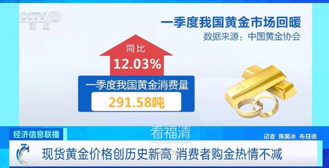 中国黄金协会公布的数据显示,一季度我国黄金市场回暖,黄金消费量291.58吨,同比增长12.03%。其中,黄金首饰189.61吨,同比增长12.29%;金条及金币83.87吨,同比增长20.47%。