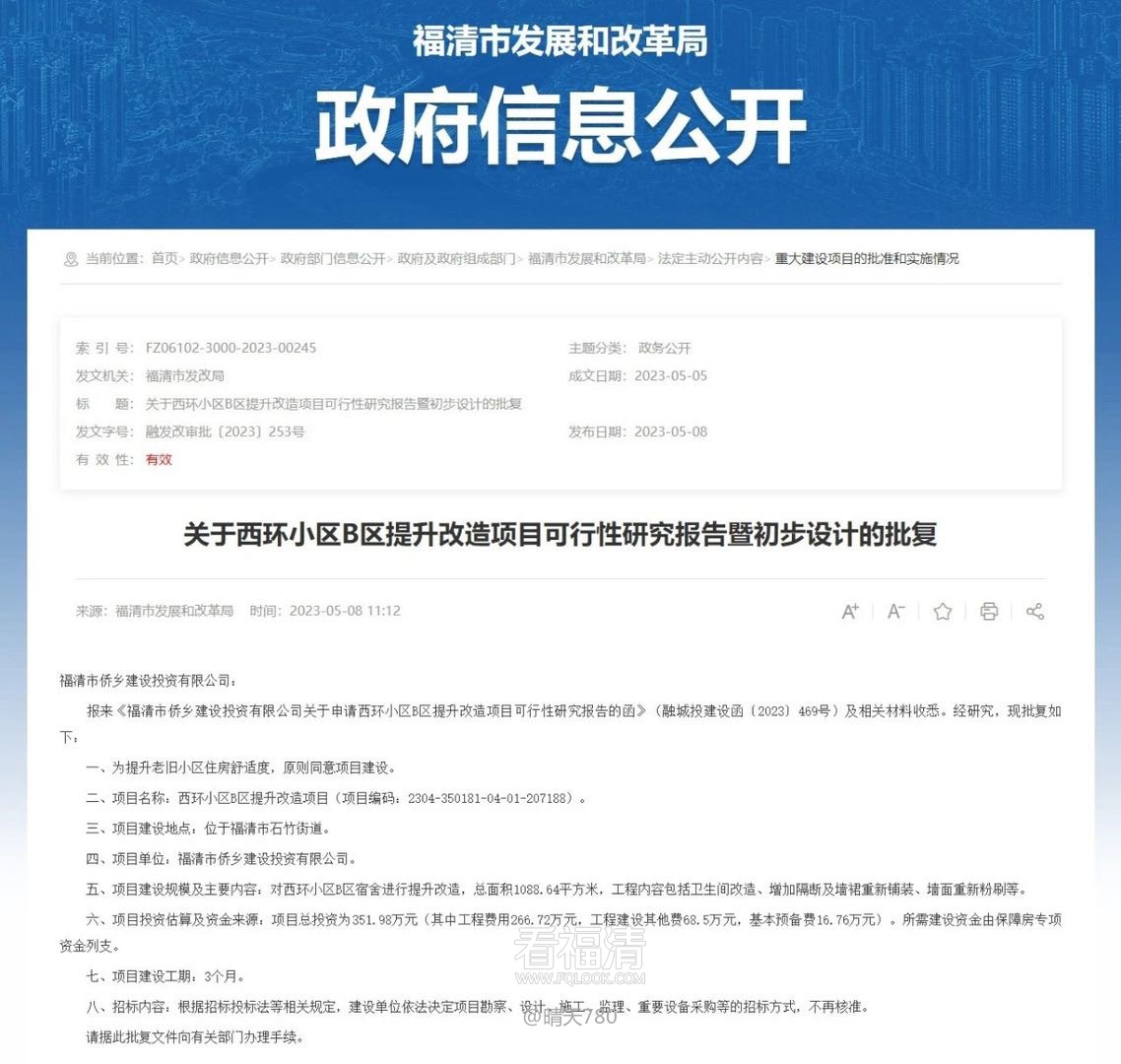 项目名称:西环小区B区提升改造项目(项目编码:2304-350181-04-01-207188)。