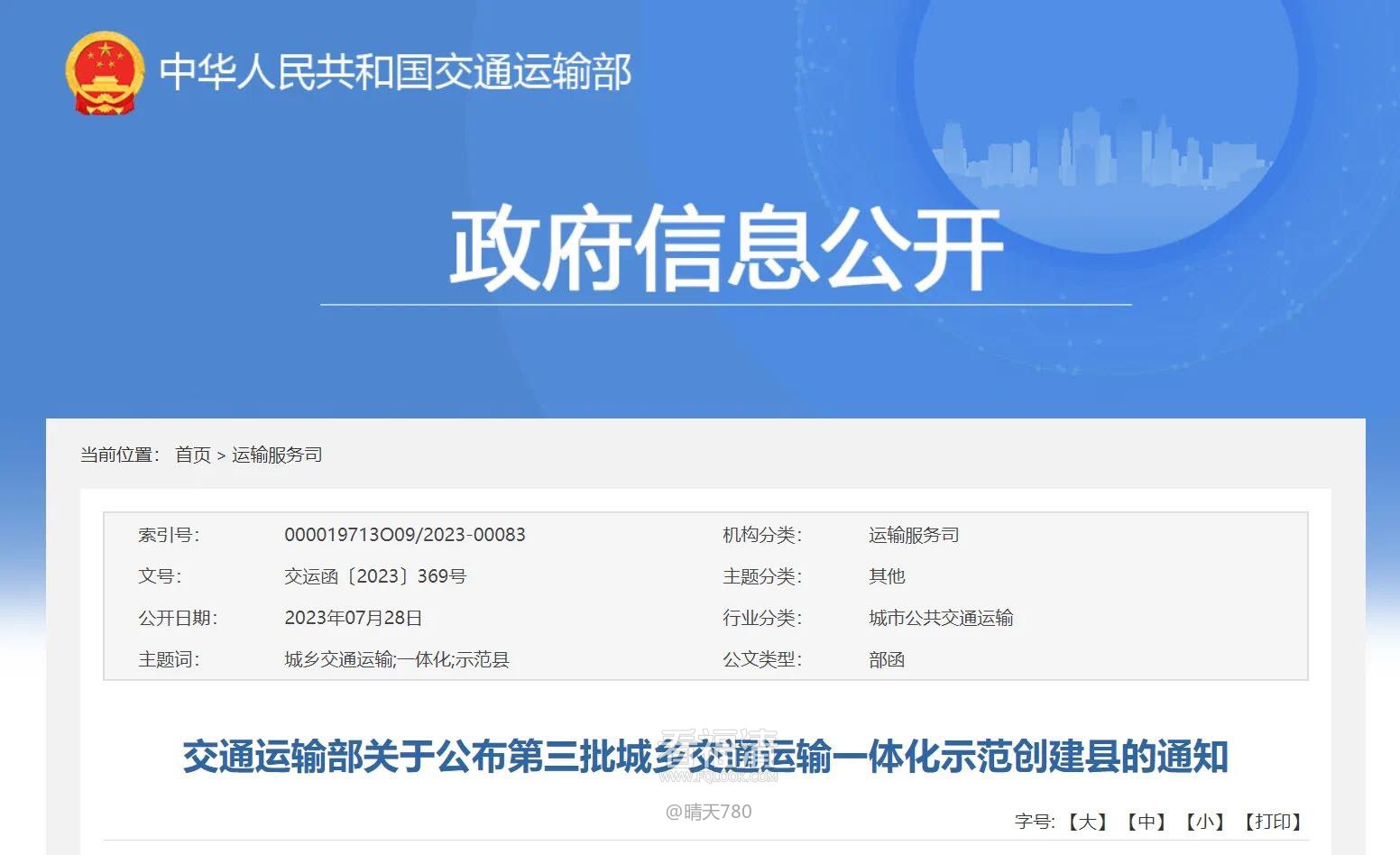 运输一体化示范创建县的通知