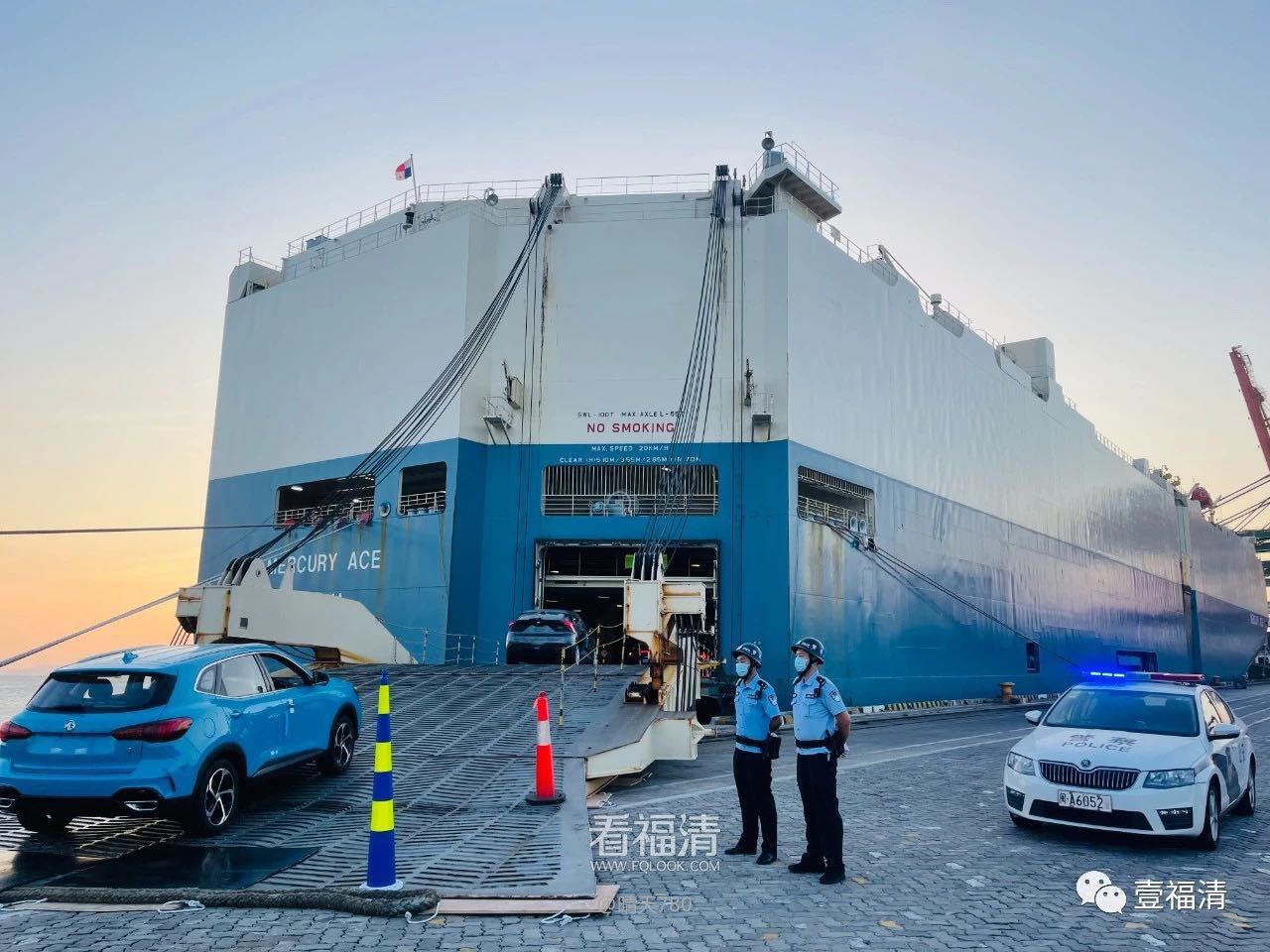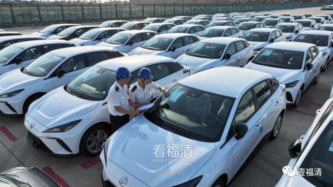 在福州港江阴港区1号泊位一辆辆崭新的上汽名爵品牌车缓缓驶入巴拿马籍滚装船“安吉辰星”号本次出口也是上汽集团今年在江阴港区开展的第10次外贸滚装汽车出口作业