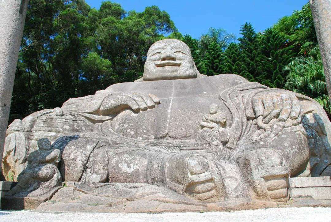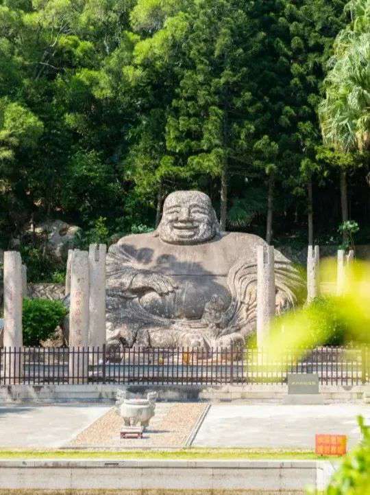 “一佛”,即弥勒佛石像,中国最大的立体石弥勒佛坐像。现为国家级文物保护单位,与泉州清源山的老君造像合称为“华夏一道一佛”,堪称福建石雕二绝。弥勒岩刻成的弥勒佛坐像除了硕大无比外,还有两大奇妙的地方:其一,佛像的五官和身体各部位的比例十分准确,而且形神兼备,栩栩如生。其二,佛像虽然是岩石雕刻而成,但佛像的脸、肩、胸、腹、手,却给人有弹性、光滑的感觉。应当说是元代石刻精品,天下无双。
