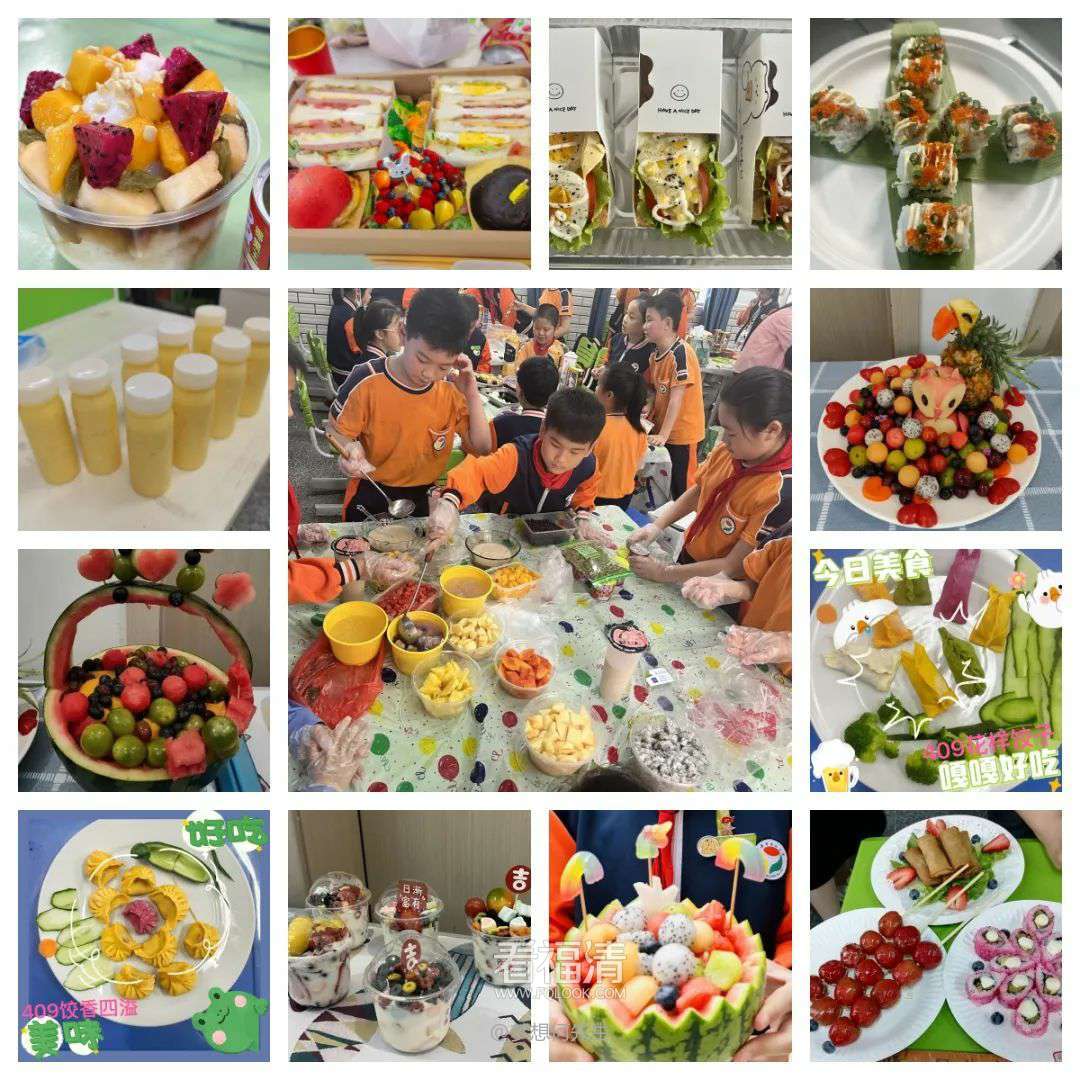 小小的创意,将给生活带来大大的惊喜;小小的创造,将给美食带来华丽的转身。三、四年级的同学在创意美食DIY制作中脑洞大开,将自己的奇思妙想融入美食:当饭团变成愤怒的小鸟,当水果孔雀开屏,当水果捞遇上了奶茶……生活中常见的香蕉、苹果、西瓜等水果在大家的奇思妙想中闪亮变身,美味的寿司、香甜的冰饭、可口的杨枝甘露更是让人垂涎三尺。创意给了孩子们无限的乐趣,创意给劳动带来无限生机。