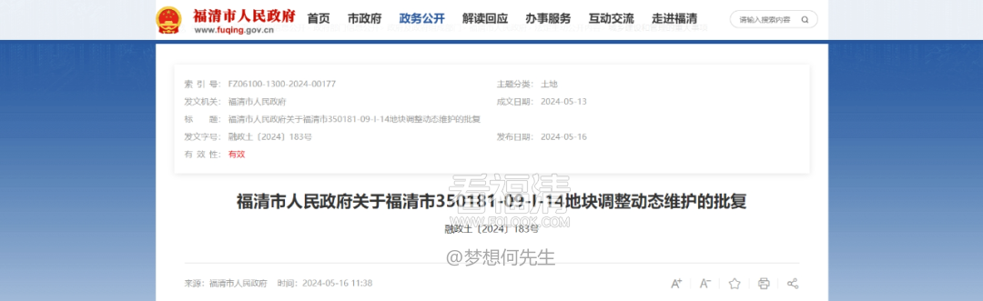 福清房产网讯:近日,福清市人民政府公示“关于福清市350181-09-I-14地块调整动态维护的批复”。