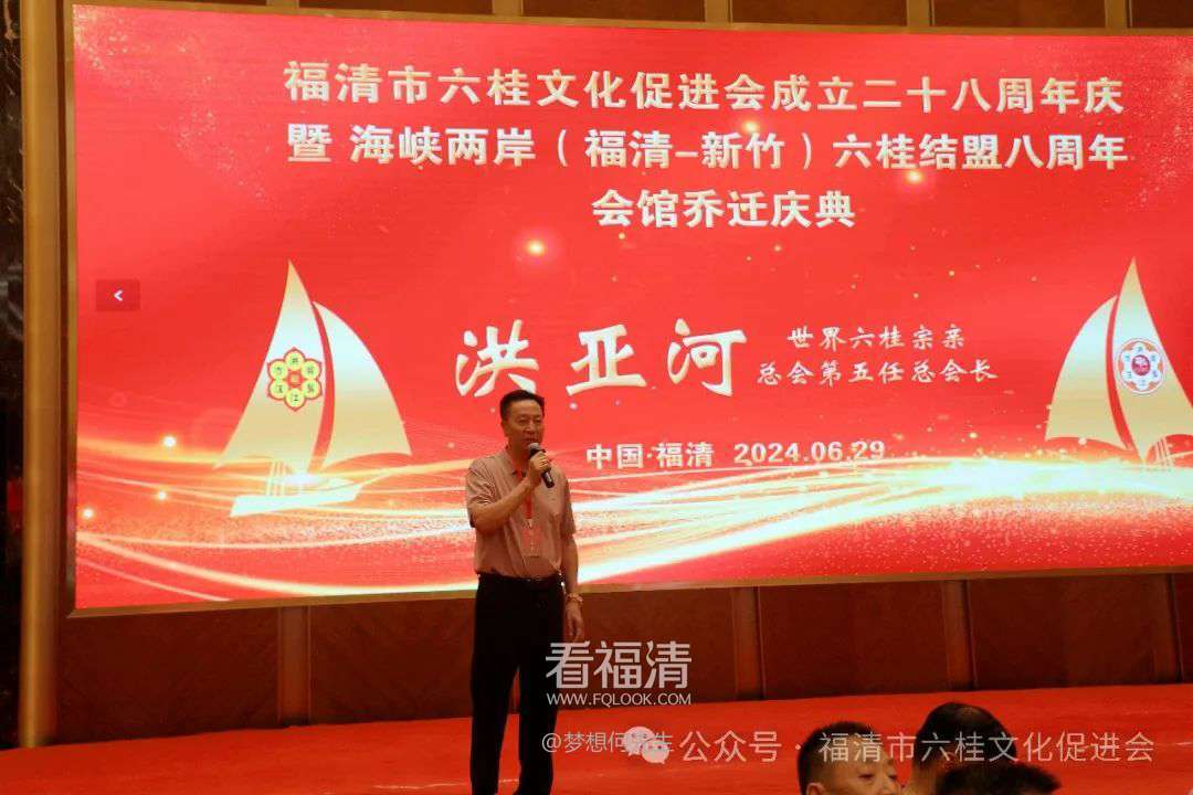 6月29日,福清市六桂文化促进会成立廿八周年暨海峡两岸(福清—新竹)六桂结盟八周年、会馆乔迁庆典在融侨大酒店二层宴会厅盛大举行,省市相关领导出席,台湾各县市60位六桂宗亲跨海而来,以及来自加拿大、日本、比利时、喀麦隆等国家,以及内地各省市、本省各市县和本地的六桂宗亲近700人欢聚一堂,共襄盛举。