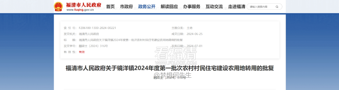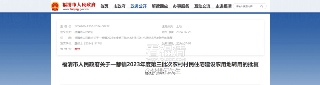 福清房产网讯:近日,福清市人民政府先后发布多则“农村村民住宅建设农用地转用的批复”,其中涉及一都镇、港头镇、镜洋镇、沙埔镇,转用土地包括旱地、园地、水田、草地等。具体如下: