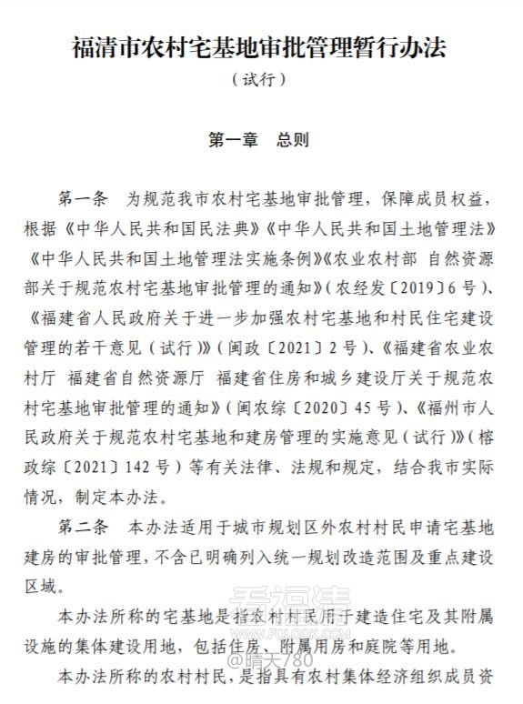 福清市政府官网刊登公示,刊发了《关于印发福清市农村宅基地审批管理暂行办法(试行)的通知》,暂行办法明确了城市规划范围以外的农村宅基地建房的审批管理应当遵循的原则,对于建房审批的条件以及需要提交的材料,同时对农村宅基地、农村村民进行界定。