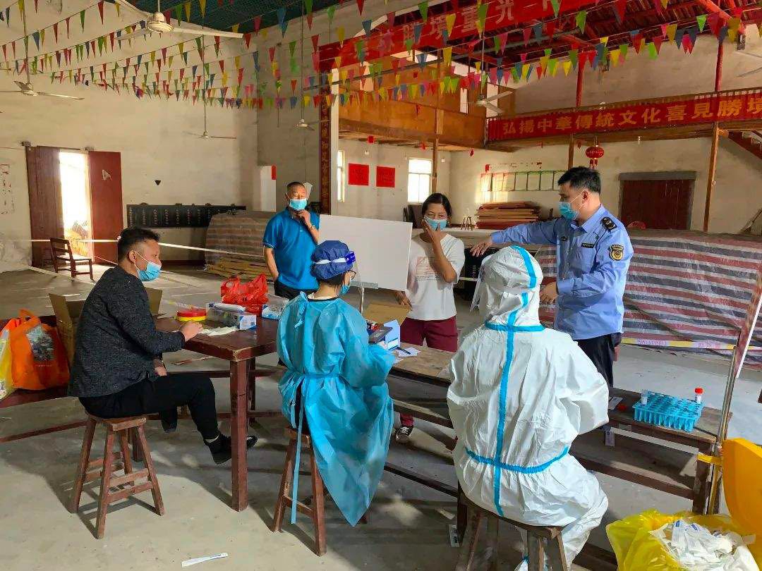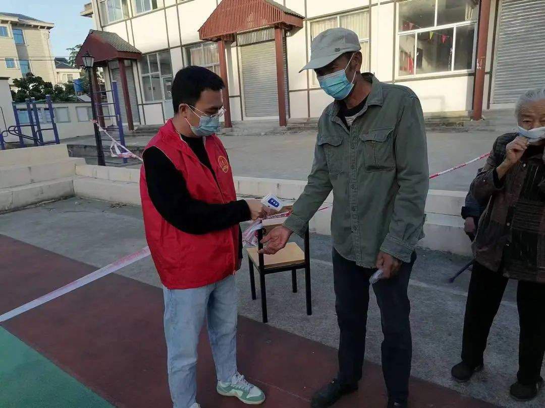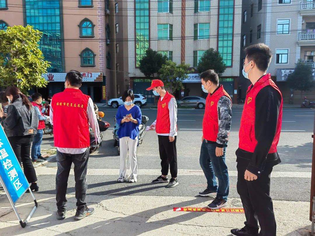 在新冠肺炎疫情防控阻击战中,行政服务中心第一支部派出4名党员志愿者,深入港头镇玉田村,开展查看健康码、测量体温等全民核酸检测服务工作。