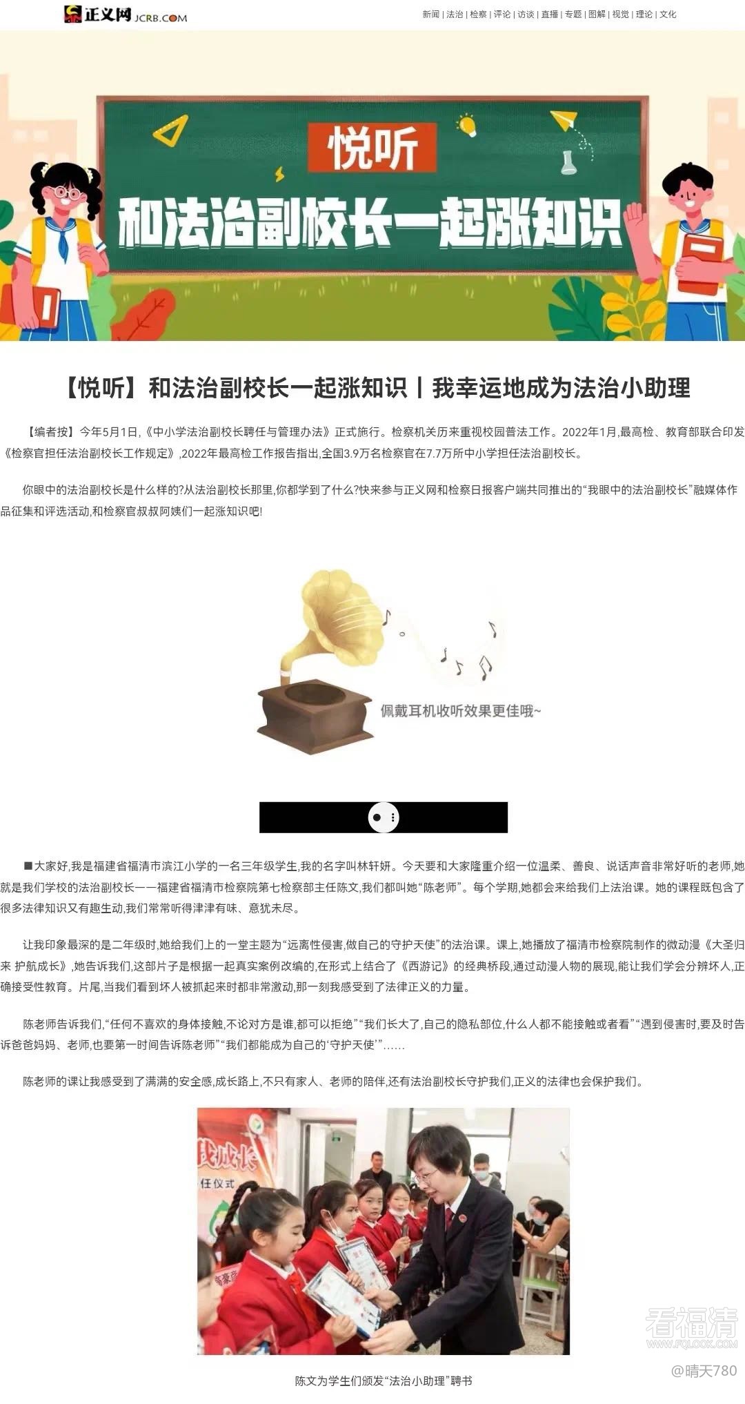 福清市滨江小学法治小助理林轩妍在听完福清市检察院第七检察部陈文主任的法治课后有感而发。