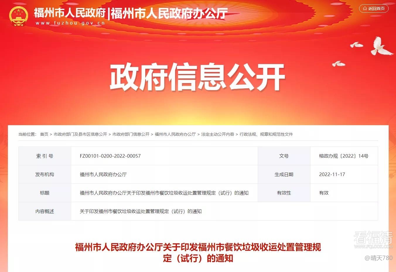 《福州市餐饮垃圾收运处置管理规定(试行)》已经市政府研究同意,现印发给你们,请遵照执行。