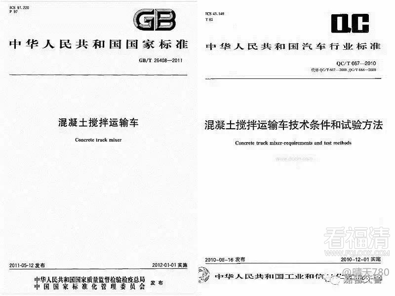 首先看国家标准(GBT/T26408—2011)和行业标准(QC/T667—2010)对水泥搅拌车的行驶速度是如何规定的:
