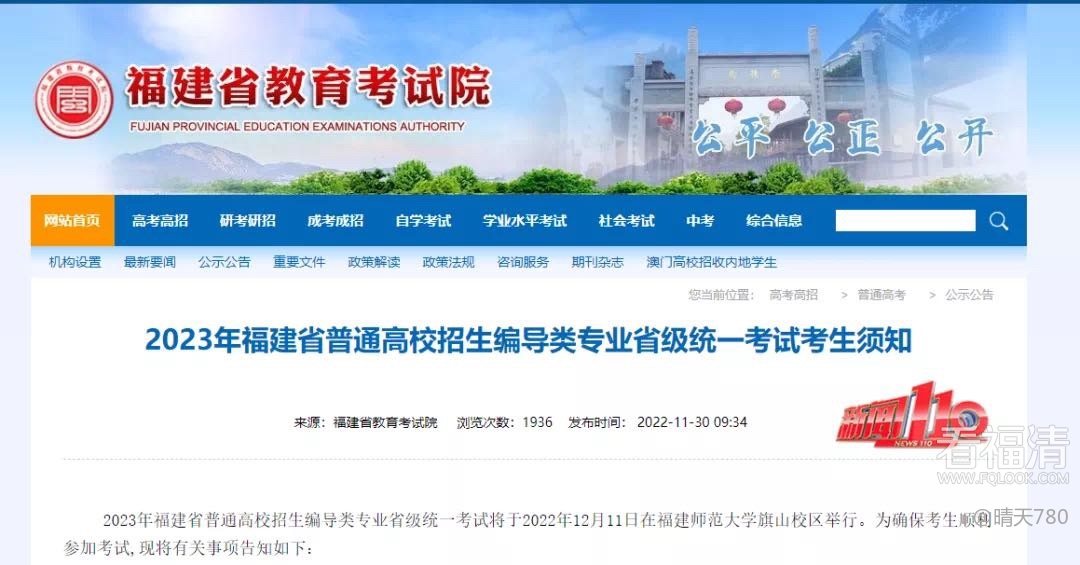2023年福建省普通高校招生编导类专业省级统一考试将于2022年12月11日在福建师范大学旗山校区举行。为确保考生顺利参加考试,现将有关事项告知如下: