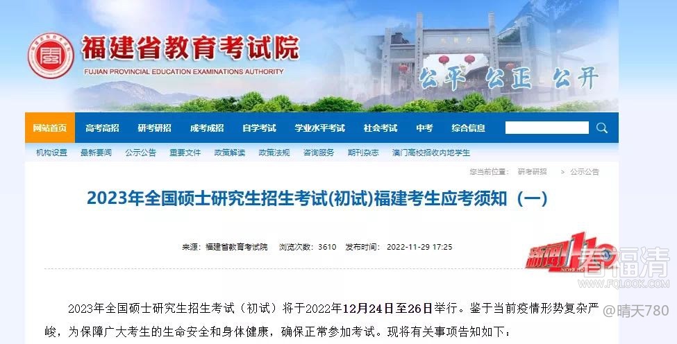 三、密切关注研考信息。请考生及时关注福建省教育考试院网站及微信公众号、报考点发布的研考有关信息;及时了解报考点所在地卫健疾控部门发布的防疫要求。请考生务必保持手机畅通,做到及时接收相关信息。如有疑问或特殊情况,请考生主动与报考点联系。