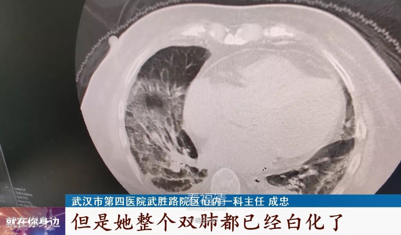 武汉市第四医院武胜路院区心内一科主任成忠介绍,正常人的CT,肺部都是黑色,可吴婆婆送来后双肺都已经白化,缺氧非常严重,几天高流量氧治疗效果都不好,一度要上呼吸机。