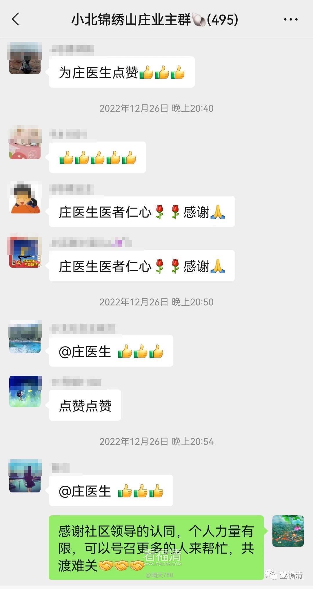 “庄医生无论多忙多累,他只要有时间,都会抽空答复业主群里邻居们的咨询问题。对于有急需的患者来说,庄医生真的是雪中送炭。”