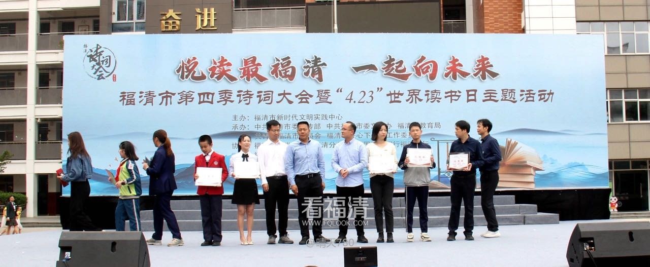 为深入学习贯彻习近平新时代中国特色社会主义思想,大力推进全民阅读、经典诵读活动,让传统文化焕发新的光彩,在全市营造“多读书、好读书、读好书”的良好氛围,4月23日,“悦读最福清 一起向未来”——2023年福清市第四季诗词大会决赛暨颁奖仪式活动在福清市实验小学举行。