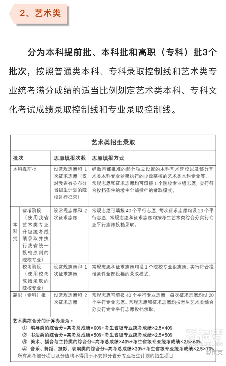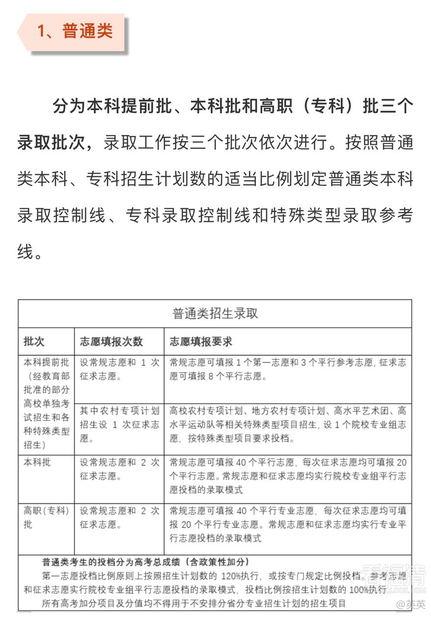 改革后,普通类本科批次设置40个院校专业组志愿,艺术类省考本科批设置40个专业志愿,体育类本科批次设置20个院校专业组志愿。