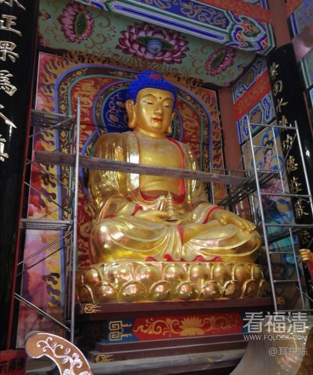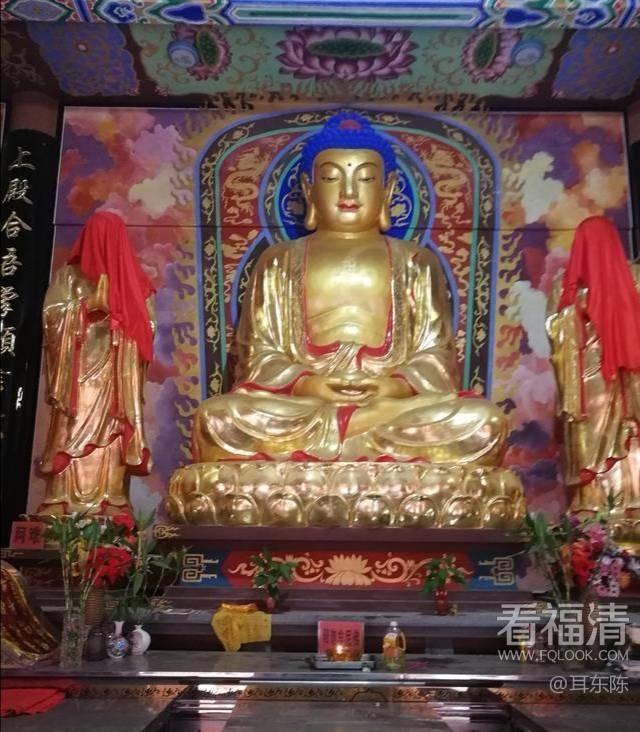第一进是天王殿。殿内供奉笑口常开的弥勒佛。左右有达摩祖师、伽蓝护法。