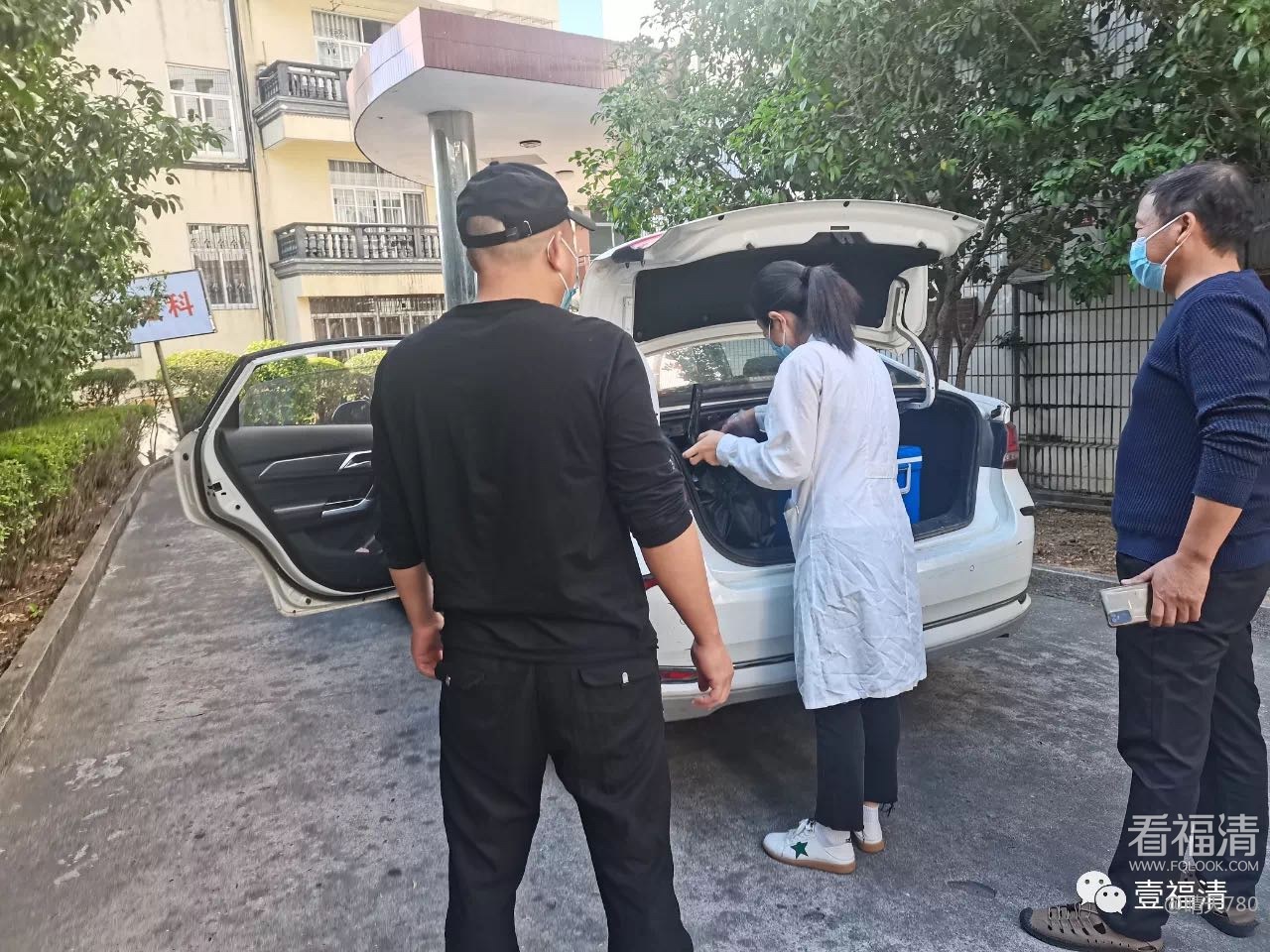 福清市疾控中心内货运车、面包车来来往往,穿着白大褂和隔离衣的医护人员拎着采集箱进进出出,整装待发。