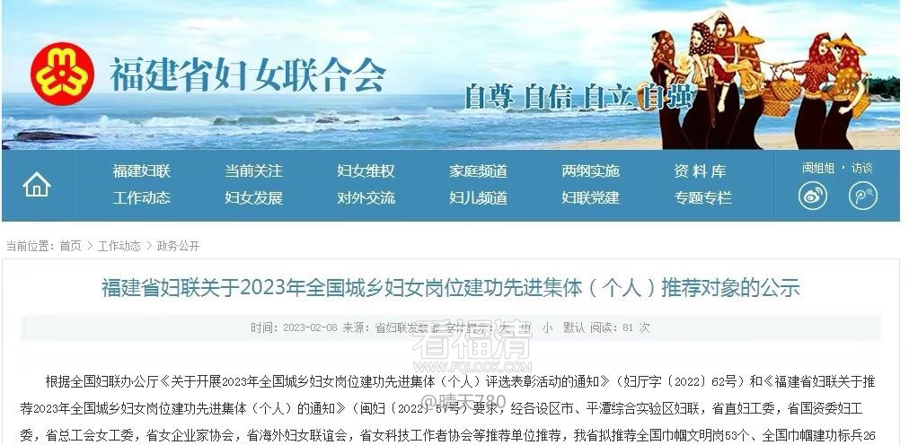 公示!福建省拟推荐全国巾帼文明岗53个、全国巾帼建功标兵26个、全国巾帼建功先进集体12个。