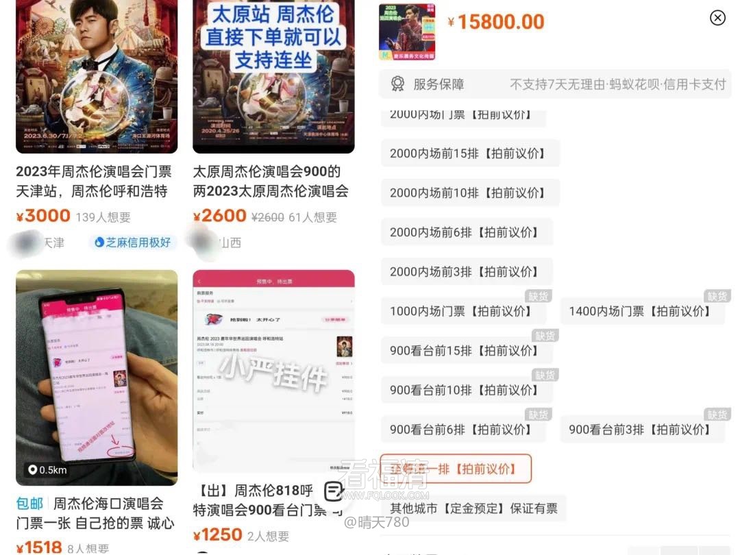 而在二手平台和社交平台上,已有多人转卖门票,不少黄牛票溢价在几百甚至上万元不等。其中,原价2000元的内场票现价为3880元,而第一排价格已“狂飚”到15800元。