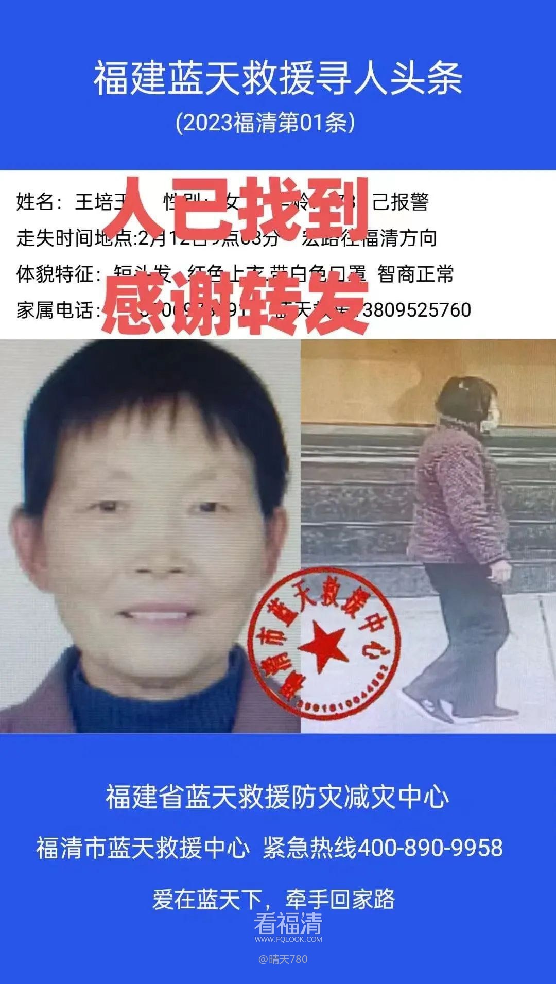 2月12日下午,福清市蓝天救援中心接寻人求助后发布寻人头条,6名队员根据线索相继出队搜寻,两小时后成