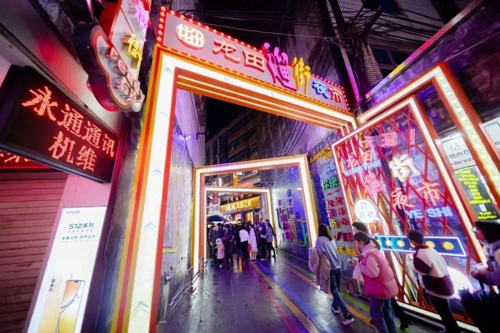 到达龙田溜街夜市,“寻味老龙田、回忆旧时光”,感受人间烟火气,随后入住兰天大酒店。