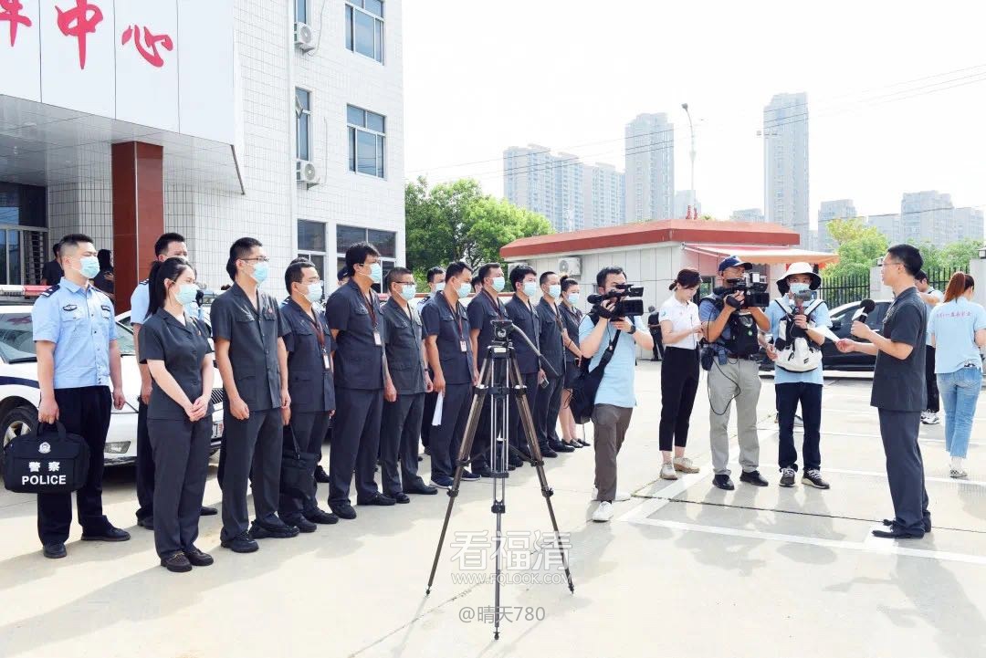 上午8点福清法院执行指挥中心大楼前警灯闪烁执行干警斗志昂扬、整装待发