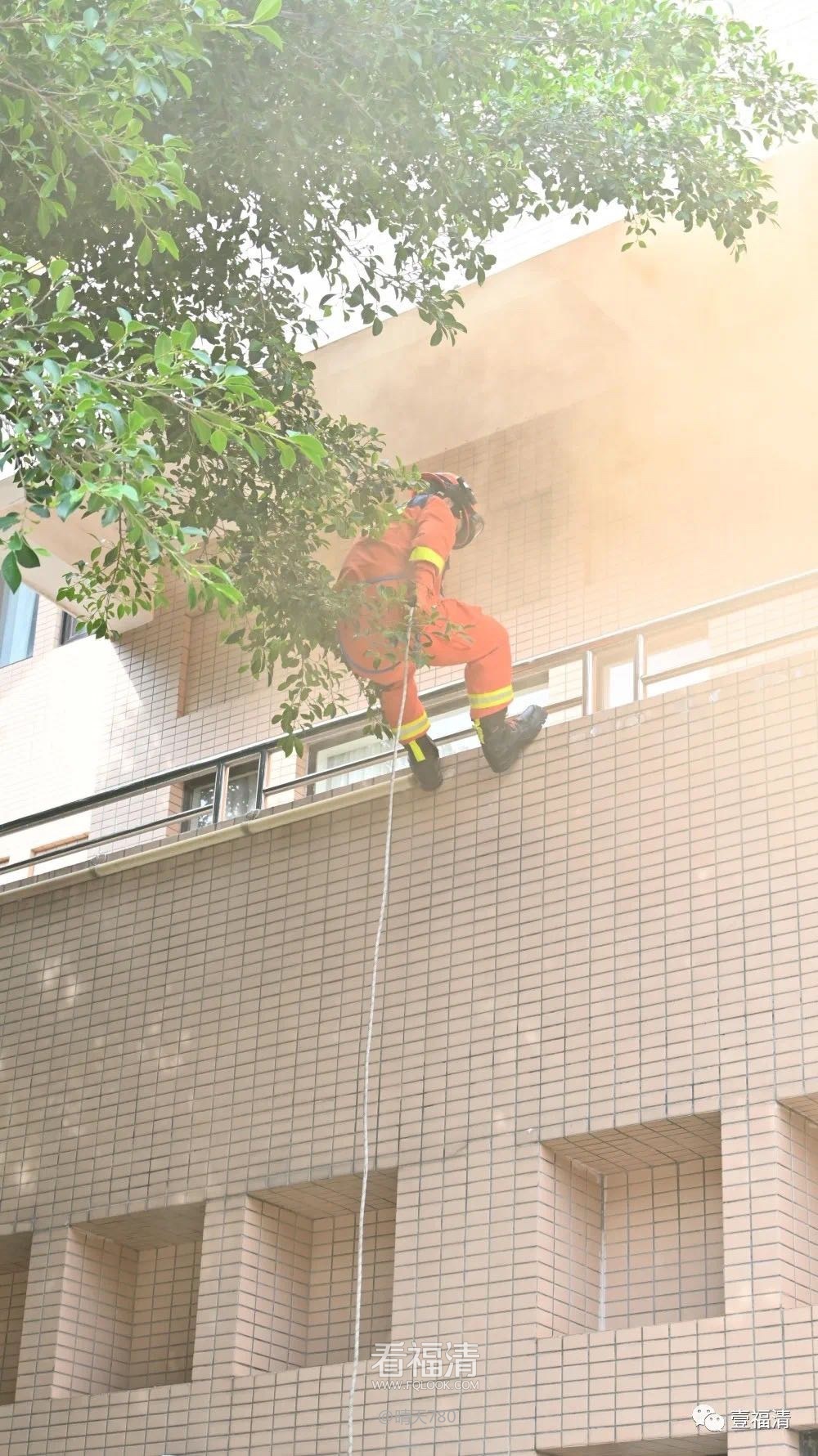 “‘一根绳’指逃生绳、逃生缓降器、逃生软梯等适合配备于自建房的辅助疏散逃生设施。对于楼高三层及以下的火灾现场,用逃生绳逃离火灾现场或者是降落到下一层楼,就可以争取时间等待救援。”福清市消防救援大队指战员武子鑫告诉记者,这次消防应急演练新增了“一根绳”逃生演练,是希望能通过这种方式进一步加强群众对“一根绳”的认识和了解,提高自救能力。