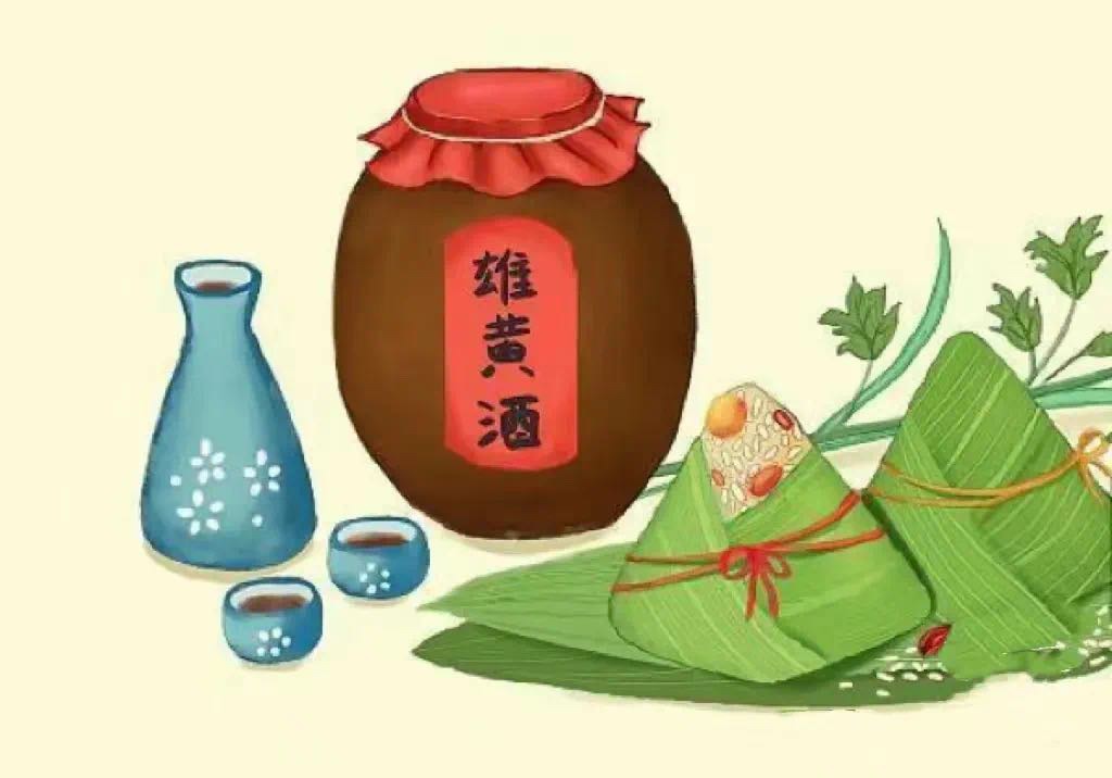 雄黄是一种矿物,也称鸡冠石,色赤红,中药多用以解毒杀虫。五日节间,大人们都要喝上一点浸有雄黄的番薯烧酒。小孩不能喝酒,就以雄黄涂抹鼻下人中处,或用沾有雄黄的肥肉贴在鼻间,以解毒祛邪。