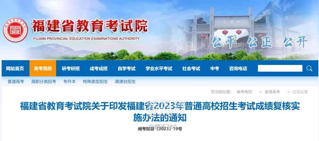 6月24日,福建省教育考试院网站公布福建省2023年普通高校招生考试成绩复核实施办法,来看详情——