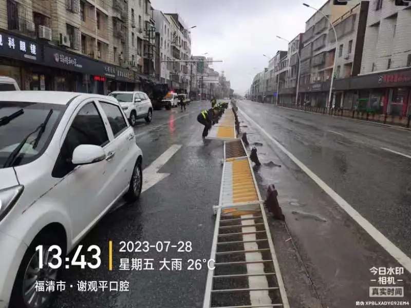 受台风影响,路面存在较大安全隐患。交警中队迅速出动15人,布置路障,设立警示范围,排除积水路段隐患,全力做好车辆和行人安全通行保障。