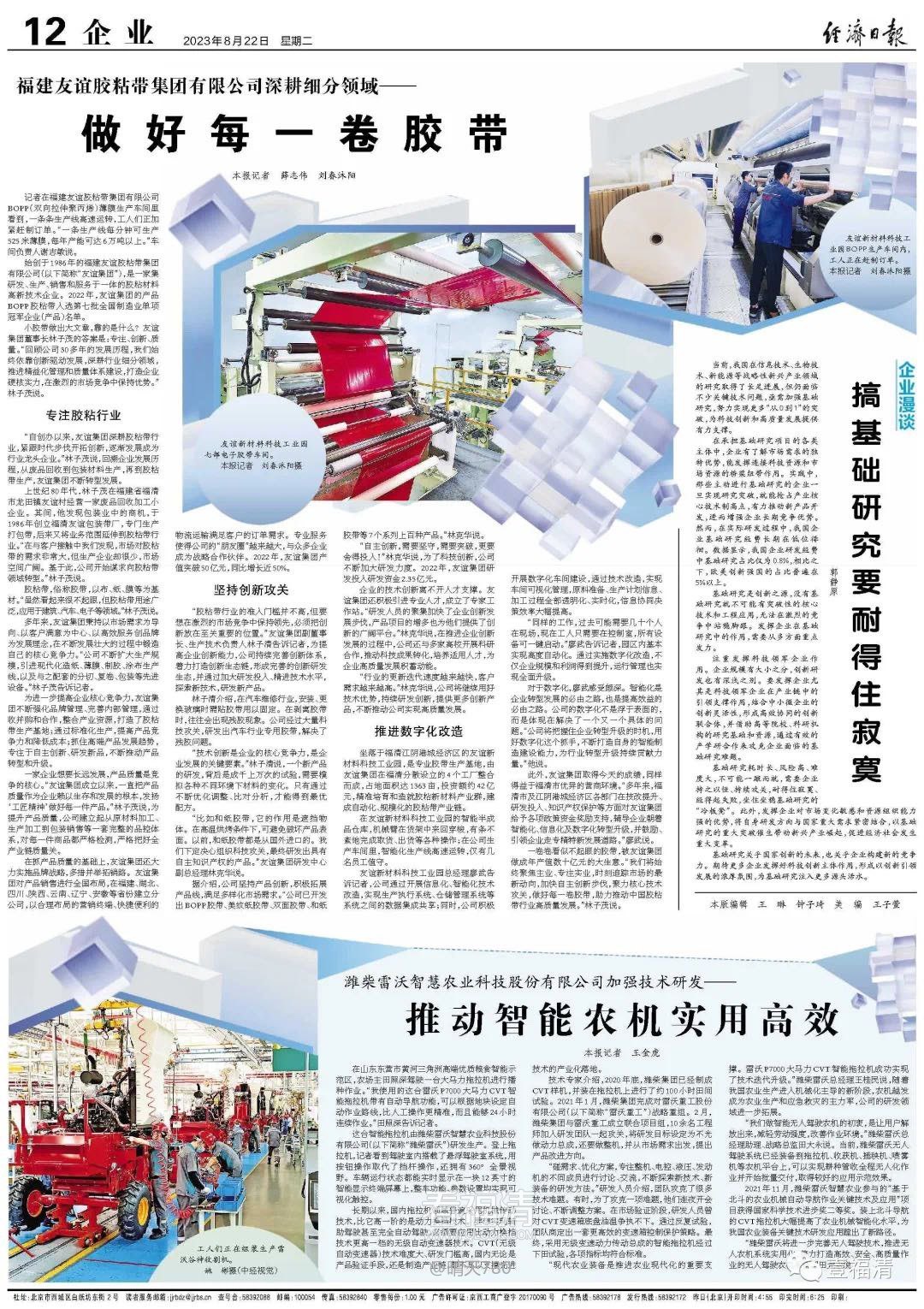 今日,《经济日报》刊发了标题为《福建友谊胶粘带集团有限公司深耕细分领域——做好每一卷胶带》的文章,报道福清企业小胶带做出大文章。一起来看详情——
