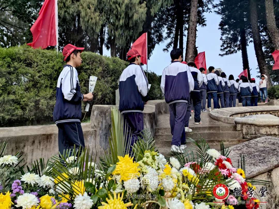 福清融城中学师生前往福清革命烈士陵园开展以“缅怀革命英烈,传承红色基因”为主题的“百园千校清明祭英烈”活动。师生们共同聆听红色故事,重温峥嵘岁月,学生代表敬献花篮,全体共同默哀。
