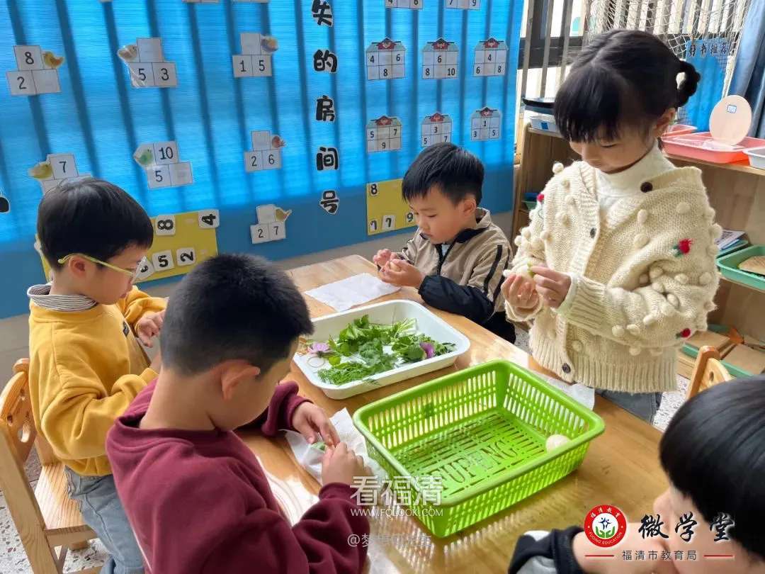 向阳幼儿园的孩子们与父母一起研究清明节的习俗和美食,完成了“清明调查表”,学习清明俗语。孩子们一起探索“鼠曲粿”的奥秘,孩子们动手制作花草蛋,亲身体验民俗饮食文化,在美好的春日感知清明节的文化内涵。