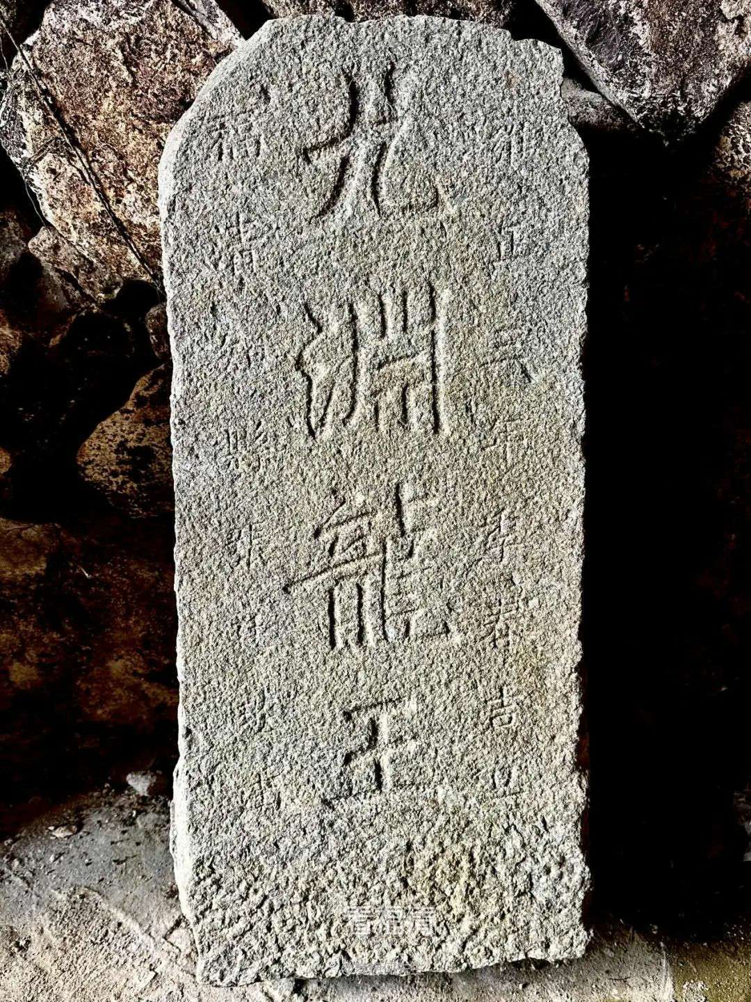 靠近龙王宫门口的一块碑,碑文只有三列字。中间一列大字刻“九渊龙王”,落款是“雍正三年季春吉旦,福清知县张廷琰建”。