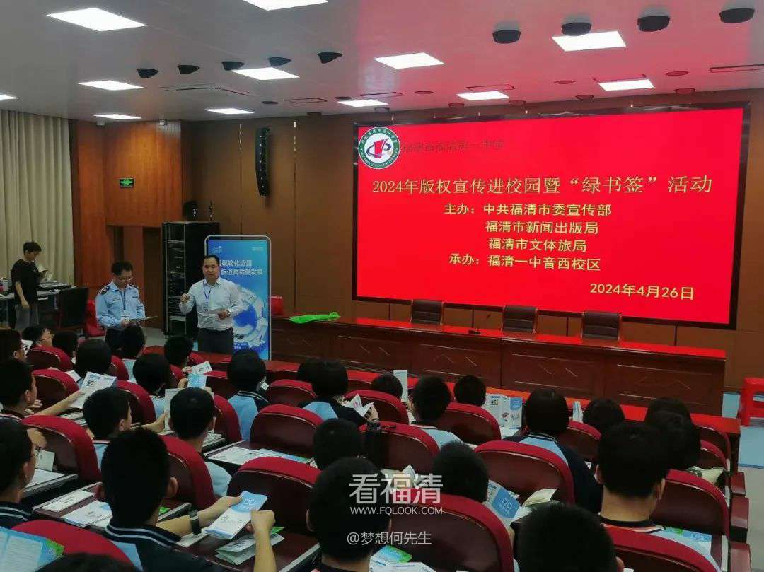 福清市2024年版权宣传周系列宣传活动由中共福清市委宣传部、福清市新闻出版局、福清市文体旅局主办。4月26日,系列宣传活动还走进福清市福和万达影院、福清市清昌万达影院、福清市市民服务中心、福清一中音西校区等处,深入宣传版权转化运用,促进高质量发展。