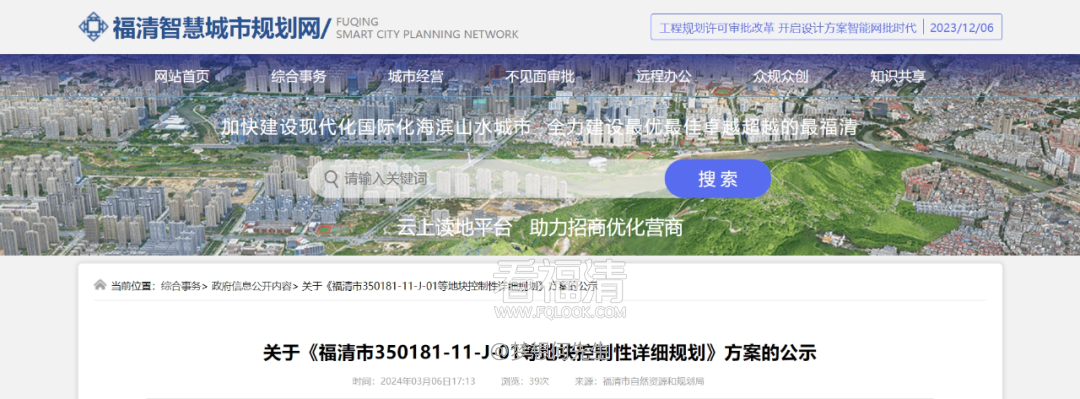 据悉,福清智慧城市规划网曾于3月6日公示《福清市350181-11-J-01等地块控制性详细规划》方案,并征求公众意见。