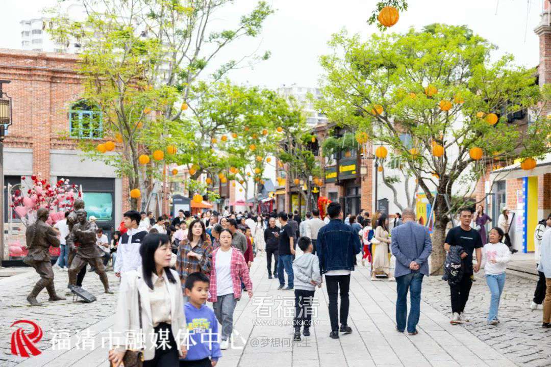与此同时,市商务局、市文体旅局等部门携手利桥特色历史文化街区管委会,聚焦商旅融合,组织策划了多场主题鲜明、内容丰富的假日活动。从“五一焕新”福清家电以旧换新消费节,到非遗文化进景区展演,再到“龙飞凤舞·福清首秀”……精彩节目轮番上演,古街人气旺盛,“热”态尽显,引发消费聚集效应。