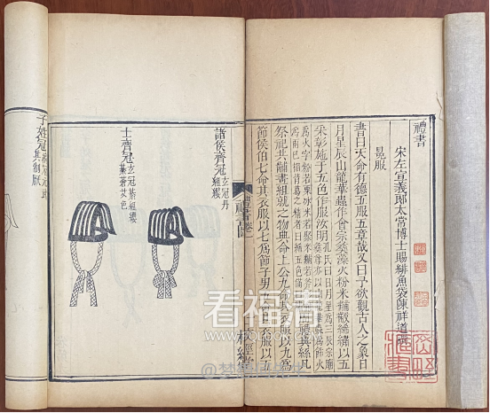 福清郭龙光校刊此版本,是以张溥据古本考订校勘的本子为底本而成,版画五百余幅,雕镌考究,较初印。全秩32册。此书阐述我国上古夏商周三代之礼制,介绍了当时上层社会的典章、制度、规矩、仪节,如“王及诸侯城郭之制”,“王诸侯大夫一寝庙制”,“朝觐之礼”,“诸侯朝天子送逆之节”,冠礼,婚礼,丧礼及丧期,各种祭祀之礼,筮之礼,射礼,衅礼,族燕之礼,视学养老之礼,养孤之礼,乡饮酒之礼等等,以及仪礼中的音乐(包括乐律和乐器)、服饰、车马、仪仗、礼器和祭品,等等。先图后文,依据前人著述引用儒家经典对上古礼制进行考核订正,内容完备,条理清楚,纠偏补缺,多有独到之处。