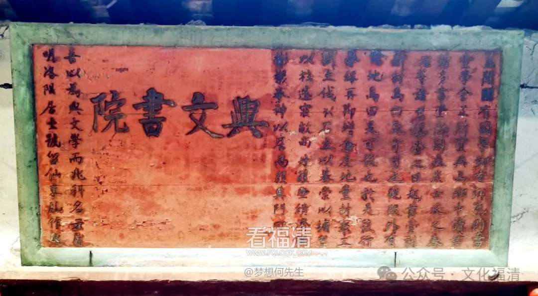 悬挂于兴文书院的明代木匾曰:“盖闻国有国学,乡有乡塾,则书堂学舍正所x兴焉。乡中读书x多书堂,xx太岁壬辰之春,冠等诸君x堂之日,x前台xxx焉,曰是xx也。观殿外有x地焉,四是可复也,于是复行x再x增x庆地,量材聚工,x土伐x石立,以基崇,以墉x,以柱xxx尚,丹濩x堂缋,济济xx,奉神以居,x颜其门曰:‘文兴书院’。x以为兴文学而兆科名云尔。明洛阳居士,号留仙,秉乩作题。”