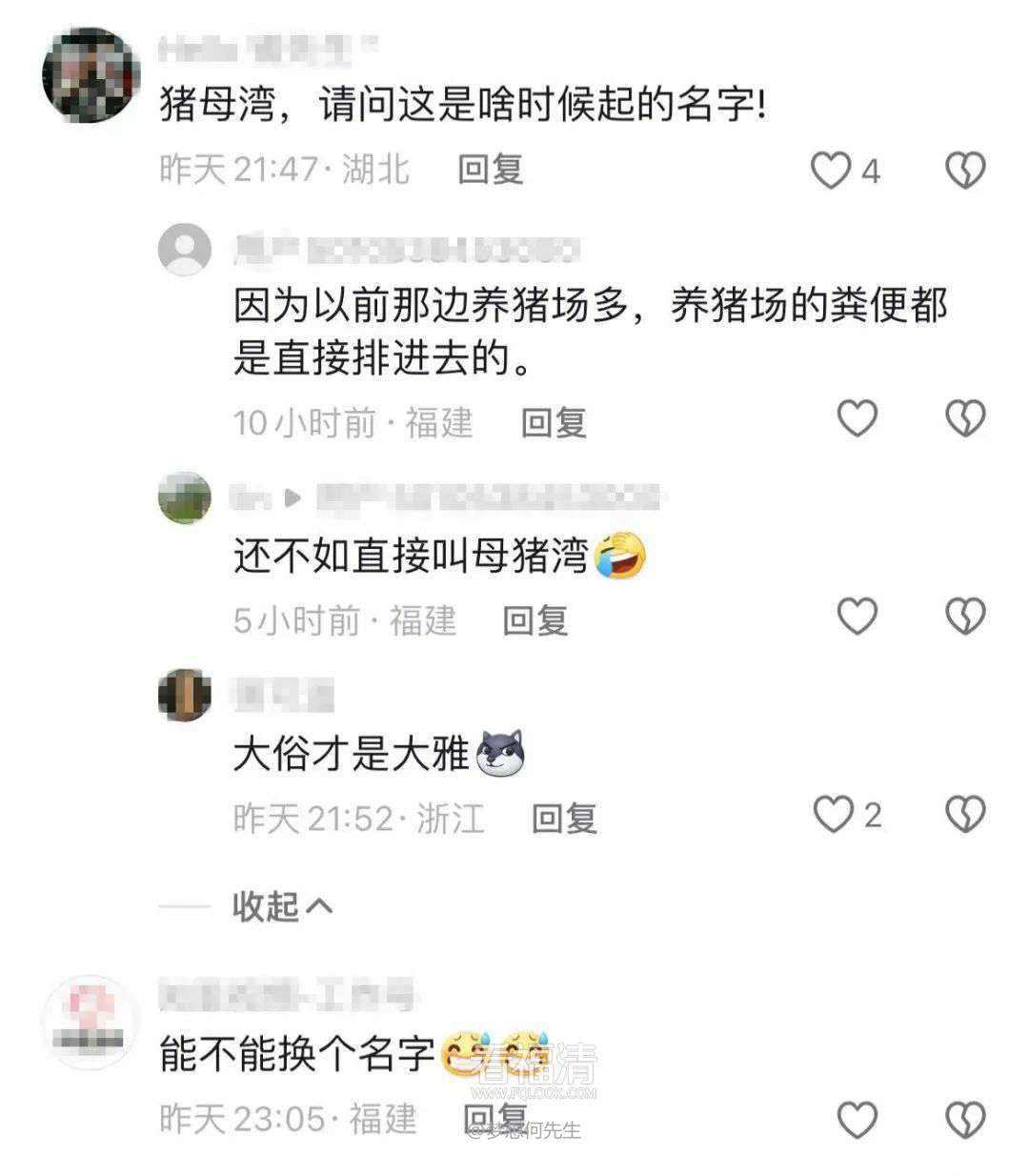 首先,说起“猪母湾”这个名称的由来,小编今天试图在网络中搜寻答案。结果是四个字:无迹可寻。小编顿时心生疑问:有没有可能就像评论区中那位网友说的那样,因为以前那边养猪场多?