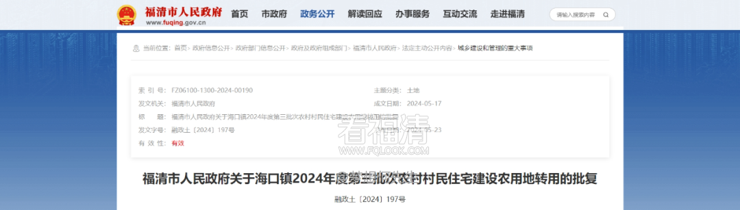 福清房产网讯:5月22日和23日,福清市人民政府先后发布多则“农村村民住宅建设农用地转用的批复”,其中涉及上迳、龙田、海口、一都、音西等镇街,转用土地包括园地、水田、旱地等。具体如下: