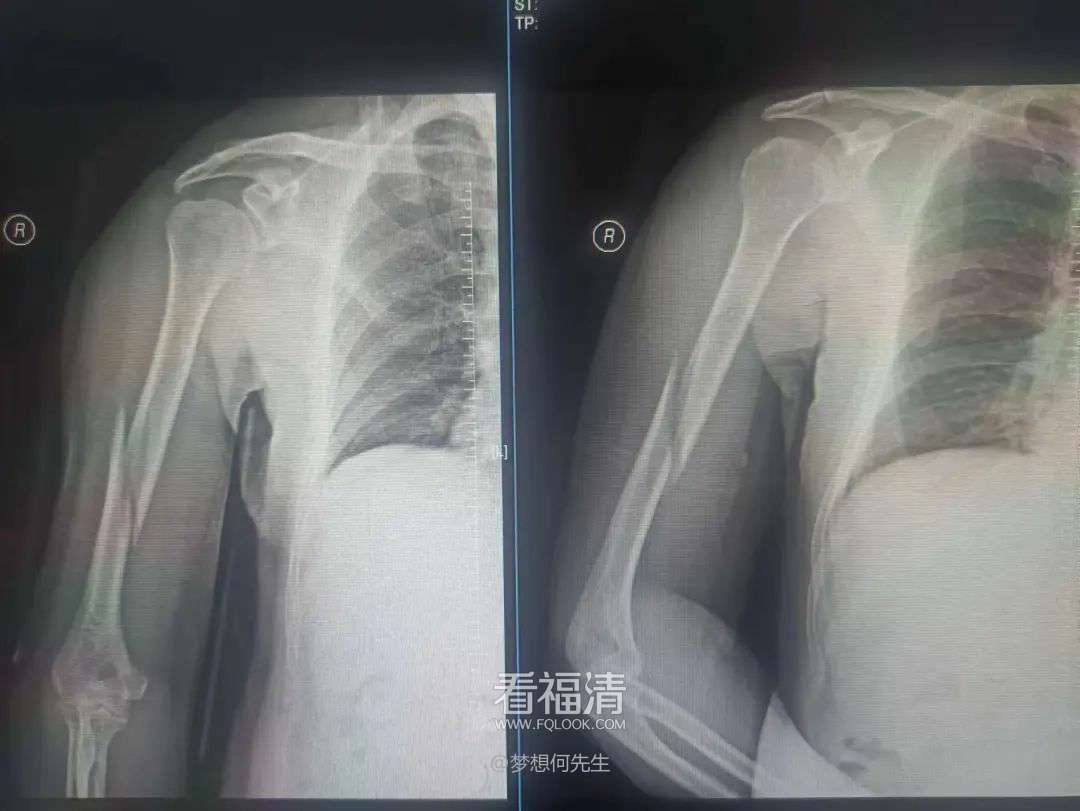 患者为53岁男性,因不慎跌倒,右上臂遭受重创,出现明显的畸形、肿痛以及活动受限。他迅速前往当地医院寻求治疗,经过详细的拍片检查后,被诊断为右肱骨干多段骨折。对此,医师原本建议通过手术治疗来确保患者的康复。然而,该患者由于患有肝硬化,导致凝血功能严重受损,无法接受手术治疗。因此,在伤后四日,患者转至福清市第五医院,希望找到更为合适的保守治疗方案。