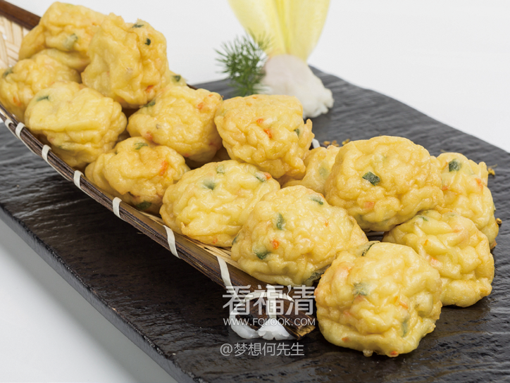 待油锅中的鱼饼炸成金黄色后,便可以将鱼饼捞起出锅,一道金黄鲜香的鱼饼便制作完成了。