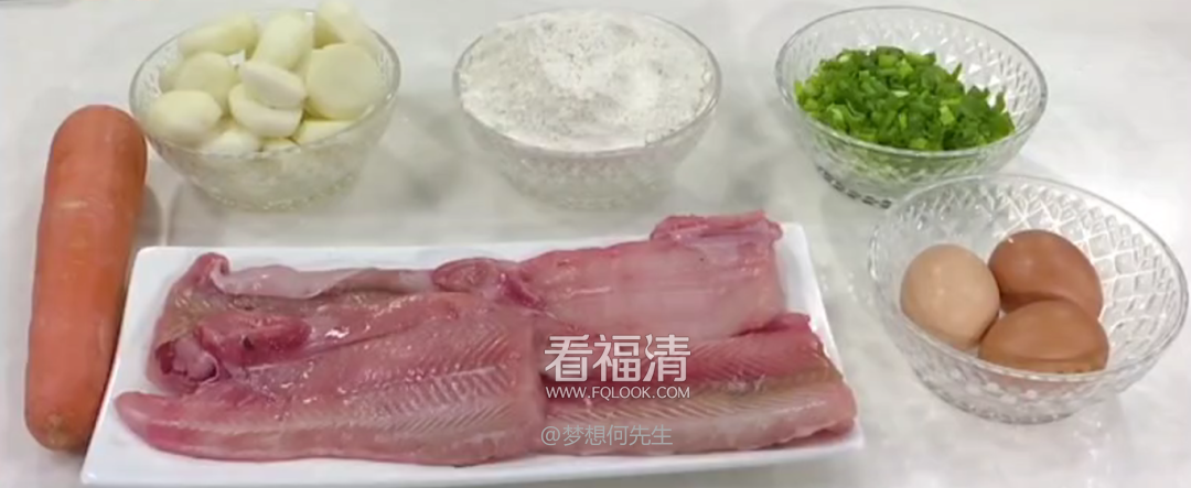 在制作鱼饼前,首先需要准备猪肉,鱼肉(鳗鱼或鲨鱼),胡萝卜丁,葱花,面粉,鸡蛋等食材以及盐,糖,味精,姜汁,老酒等调料。