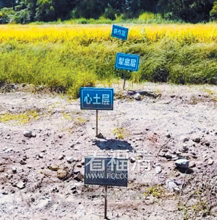 田地一角竖着的原地面层、心土层、犁底层、耕作层等标示牌,展示了耕地是怎么“造”出来的。福清融媒体中心供图